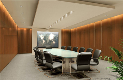 對于四方體的普通會議室聲學裝修,首先需考慮采用兩種類型吸音材料(多孔性吸音材料、結構性/多共振體吸音材料),以達到全頻均衡吸音的效果,兩類材料可間隔性安裝。其次在材料布局上,可做到主席臺正對墻做強吸音處理,主席臺后墻及頂部適當做吸音處理;兩側面墻做擴散處理,頂部可適當做擴散處理。