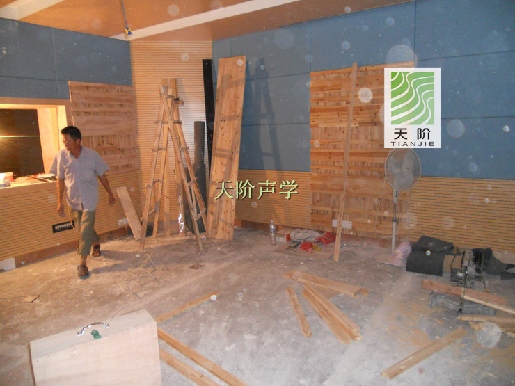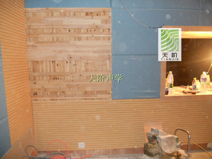 2.)射釘式安裝法:在墻體或需要安裝天階槽孔吸音板的物體上安裝木龍骨或細(xì)木工板,用射釘直接將天階吸音板釘在木龍骨或細(xì)木工板上,也可與膠水配合使用。(此種方法適合有背板或有木框的布藝吸音板的安裝)