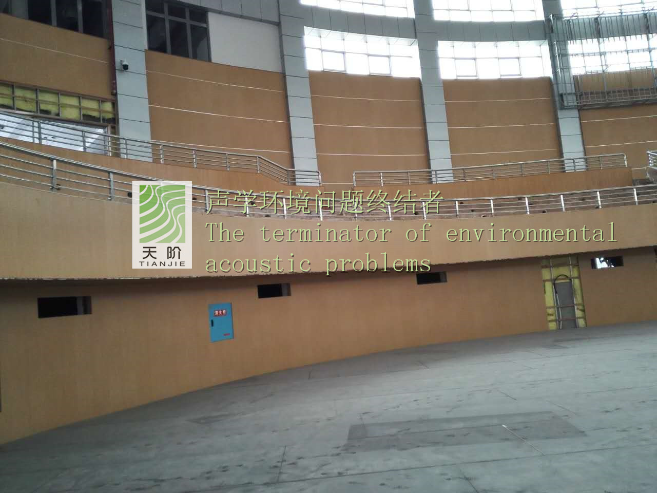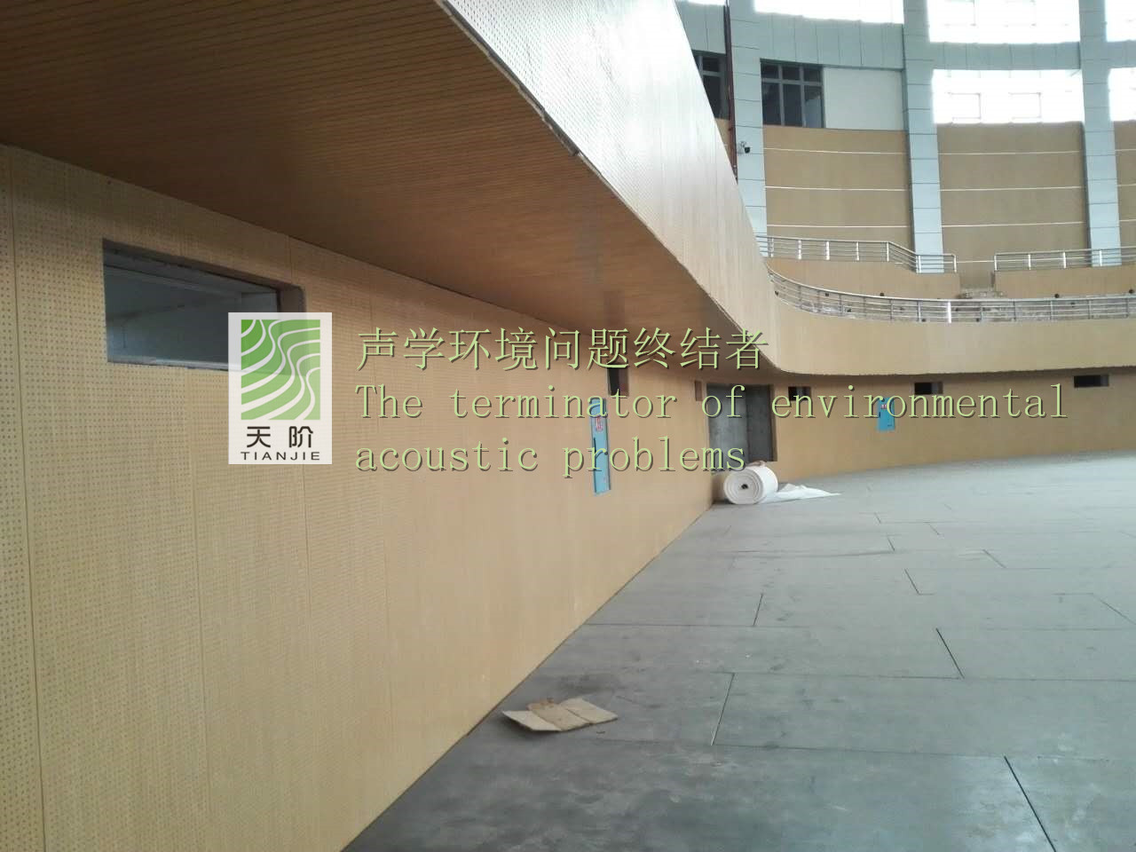 湖南省懷化體育館位于湖南省懷化市。天階聲學經過多次與客戶洽談。懷化體育館的室內聲學優化設計方案也是天階聲學獨立設計完成。公司以優質的產品質量和專業的服務,獲得客戶的認可,最終簽訂合同?,F在貨已供完,通過驗收,并已投入使用中。項目多次獲得客戶和甲方的認可和贊揚,此工程運用了天階牌吸音板5000平方的防火孔木吸音板。