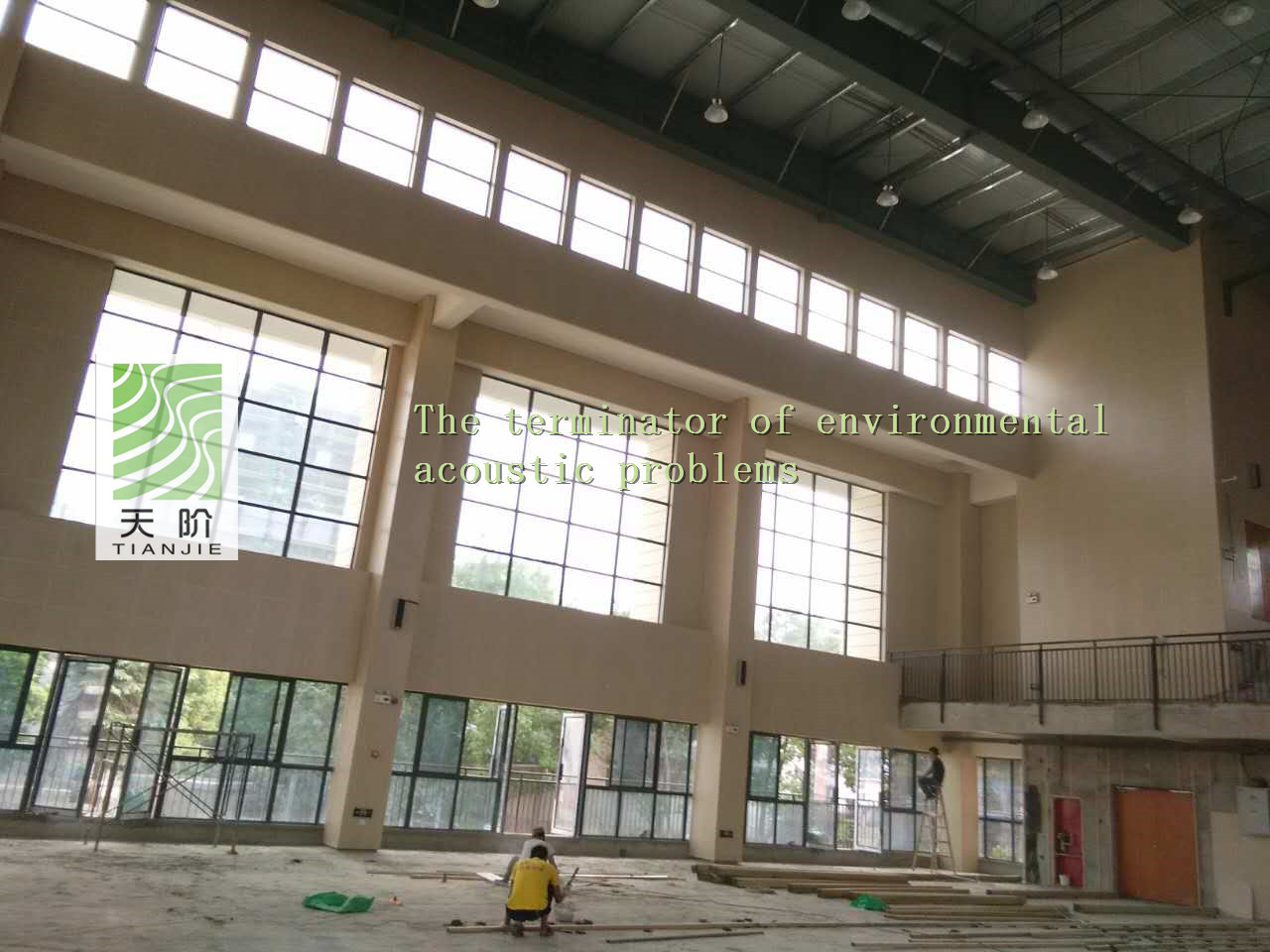 此籃球館使用了天階牌槽木吸音板2000平方,吸音棉2000平方。