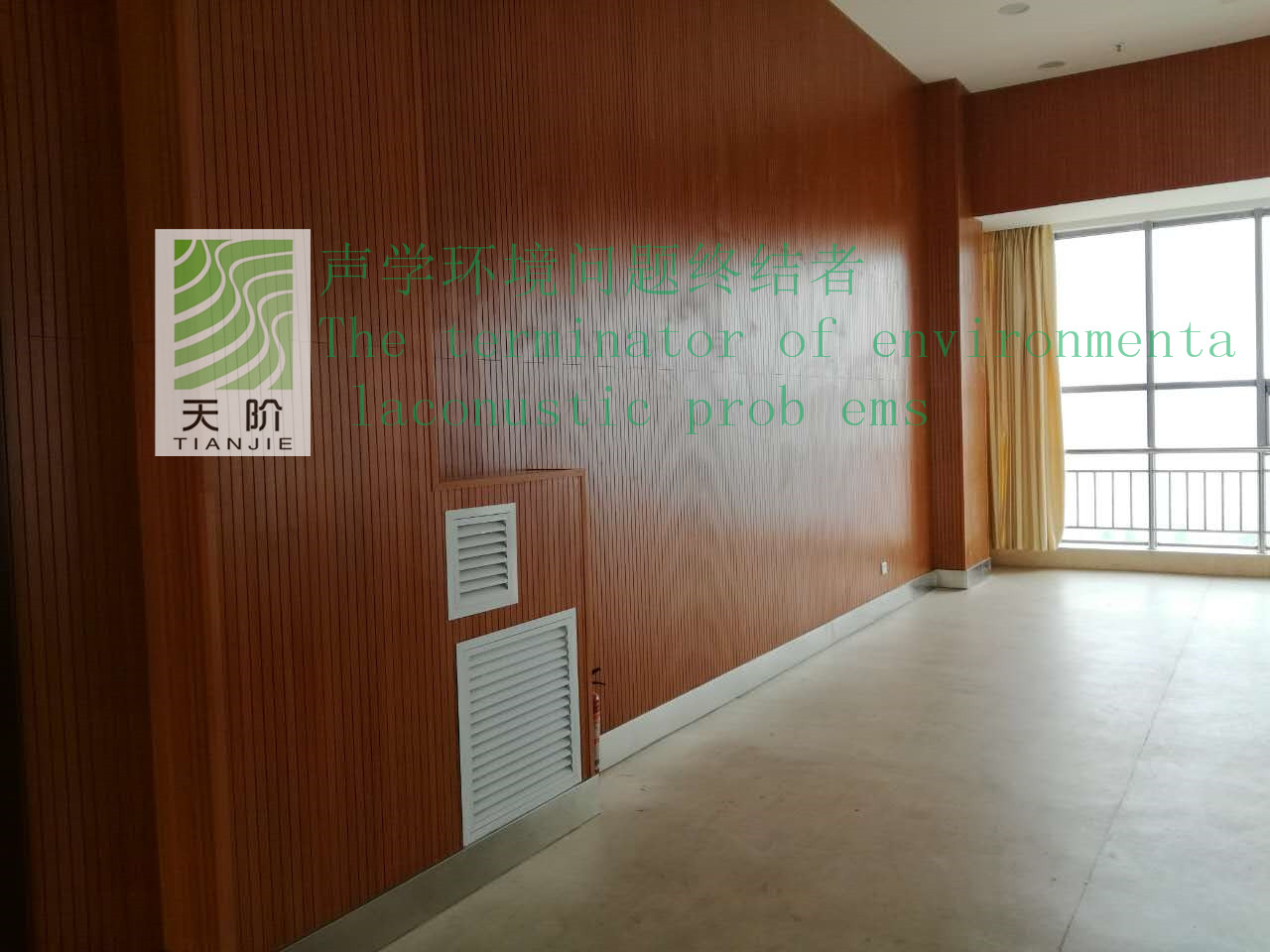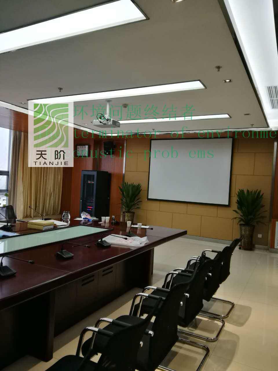 山西大運汽車制造公司辦公樓為了塑造良好安靜的辦公環(huán)境,使用了天階牌槽木吸音板1000平方,吸音軟包400平方