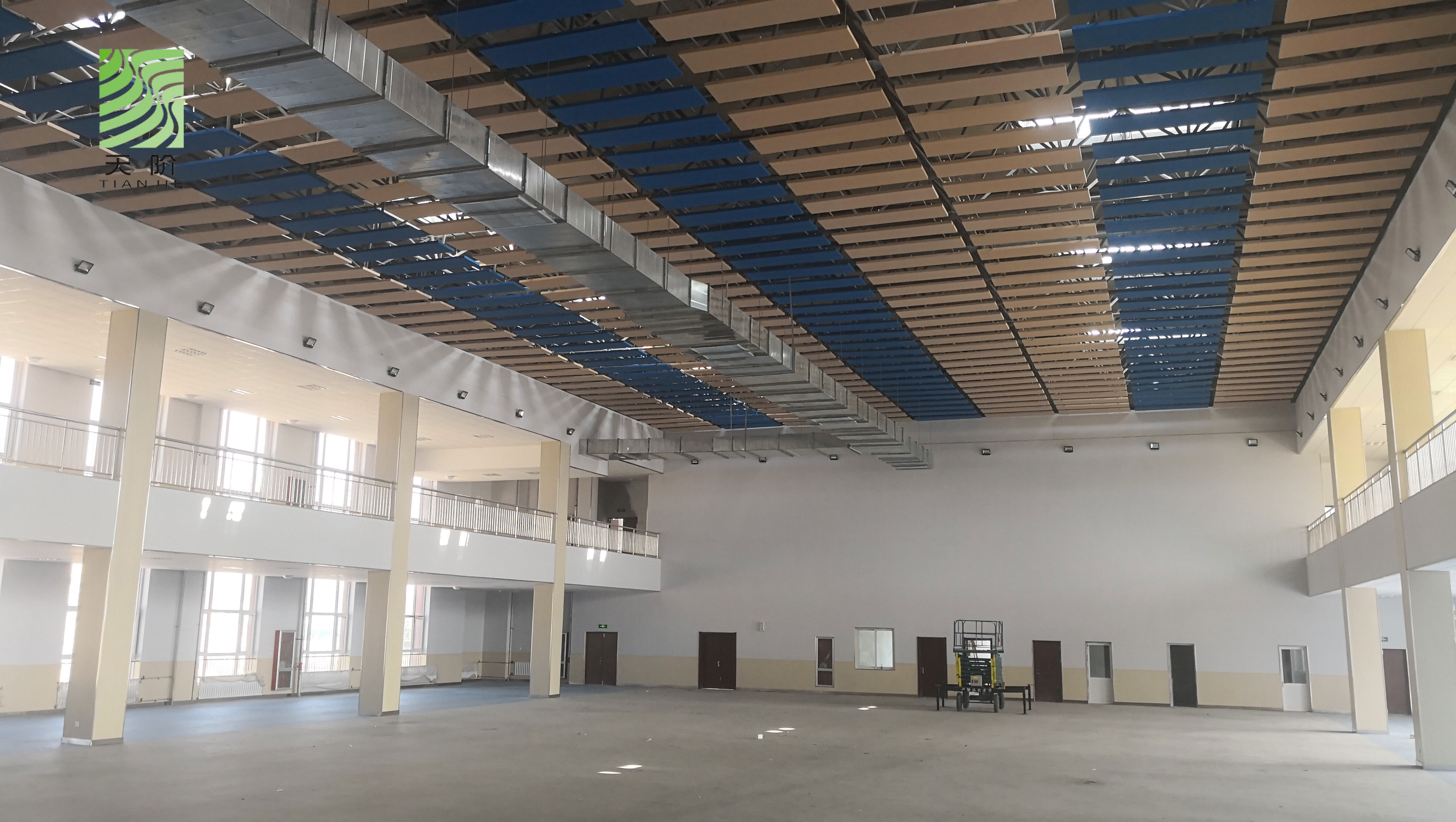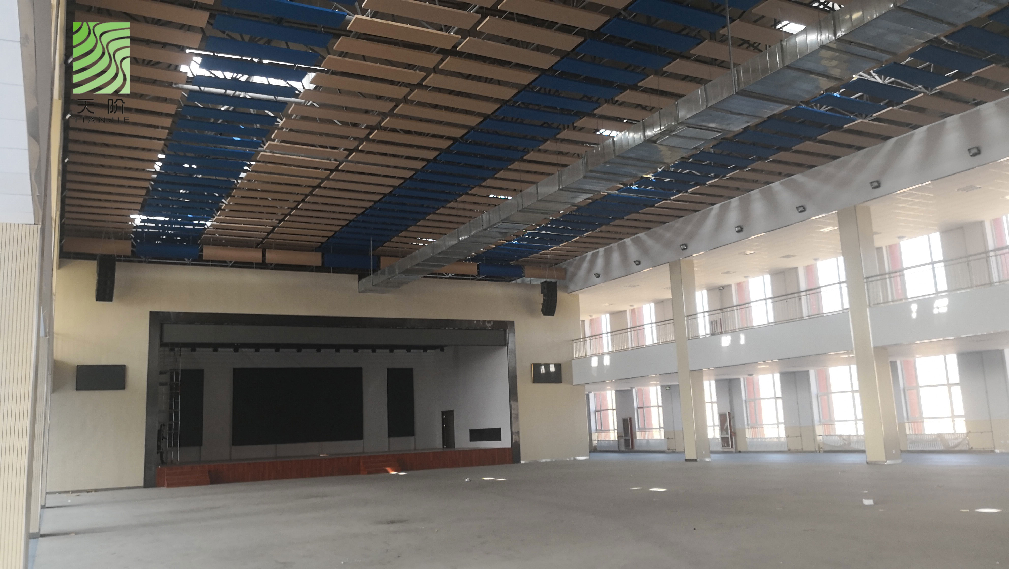 ⒈在棚頂安裝大面積的平面吸聲天花板。這種方法大量用于劇場(chǎng)、禮堂和屋頂為平面形的體育館,效果很好。但如用于弧形拱頂或采用透光屋頂?shù)捏w育館,這種方式會(huì)完全破壞了原來的風(fēng)格和采光功能,不可取。