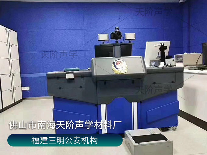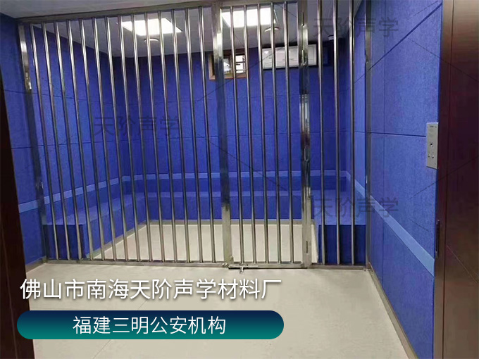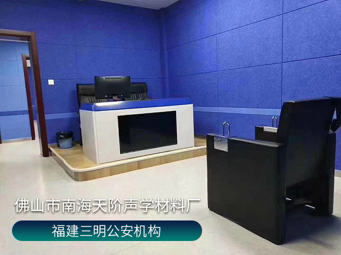福建三明公安局項(xiàng)目,審訊室選用實(shí)用又實(shí)惠的聚酯纖維吸音板,空隙吸音降噪,有彈力能卸掉大部分撞擊力,做不燃處理,安全安心。