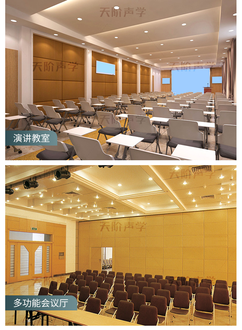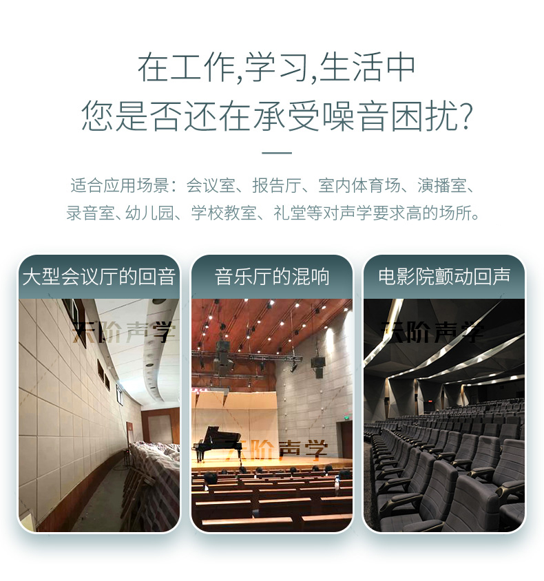 適用場所:詢問室、會議室、報告廳、學校教室、演播室、錄音室、樂隊、練習室、室內體育場、禮堂等對聲學要求高的場所。