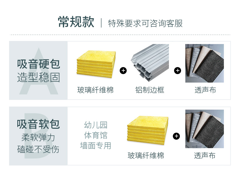 布藝吸聲板是由以吸音棉為基材,邊框固定成型后外包裹一層吸聲布而成的聲學產品。