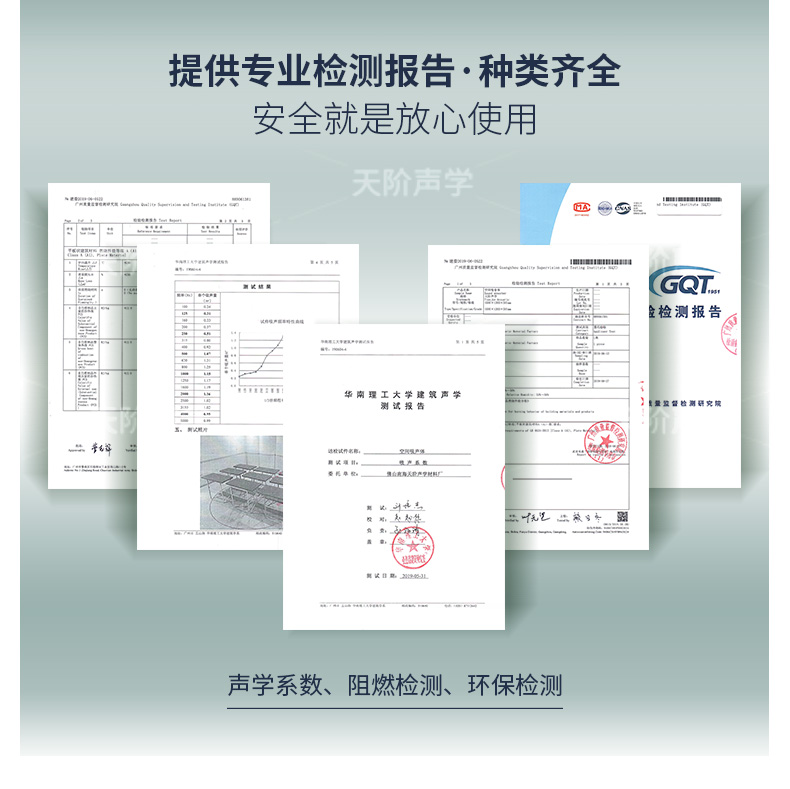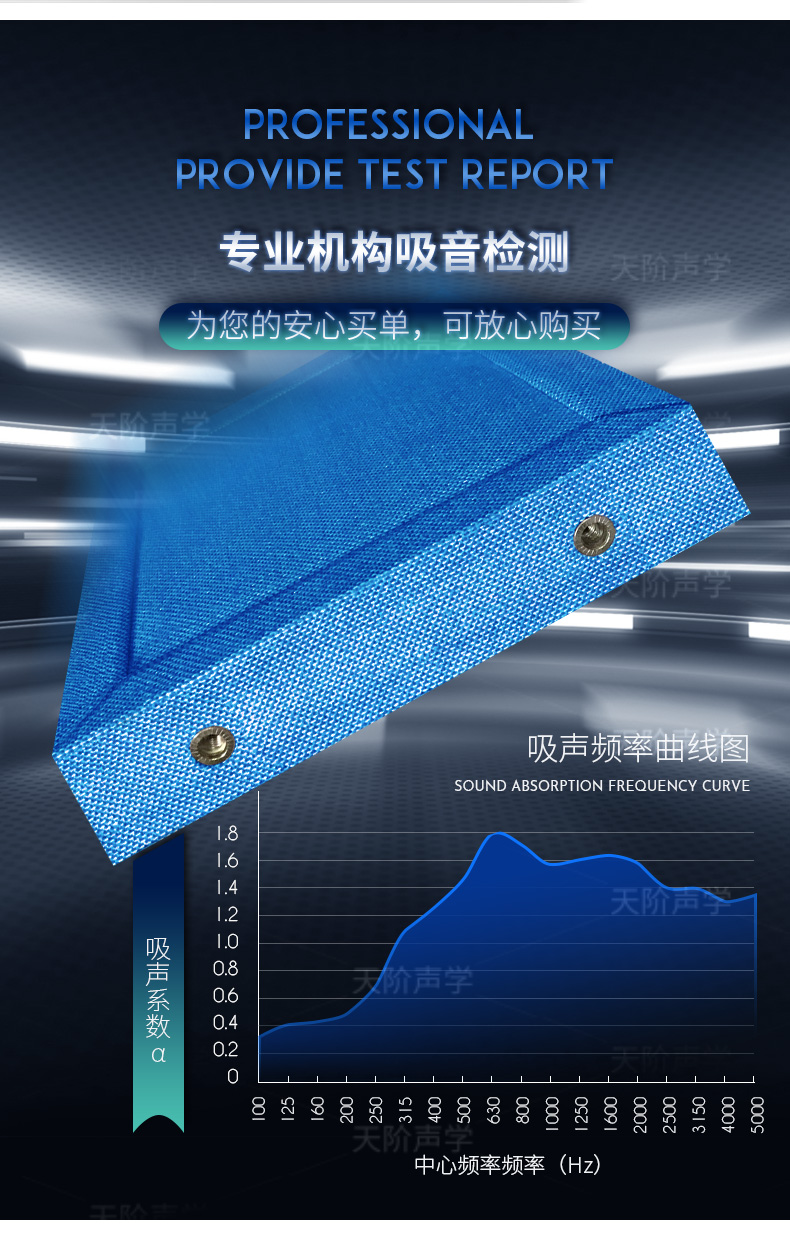 空間吸聲體的吸聲性能常用不同頻率的單個吸聲體的有效吸聲量來表示。空間吸聲體吸聲降噪(或降低混響時間)的效果主要取決于空間吸聲體的數量、懸掛間距以及材料和結構