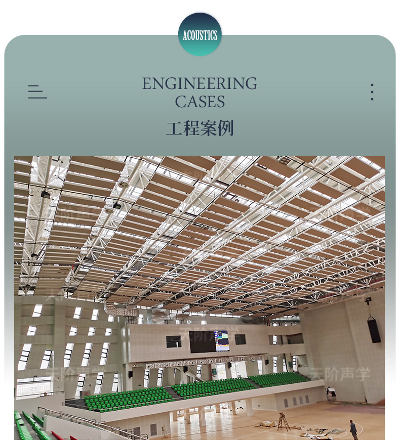 式,能增強室內的裝飾效果,最重要的是它的吸音性能,能防止大型廳堂內產生回聲缺陷,并有效降低混響時間。