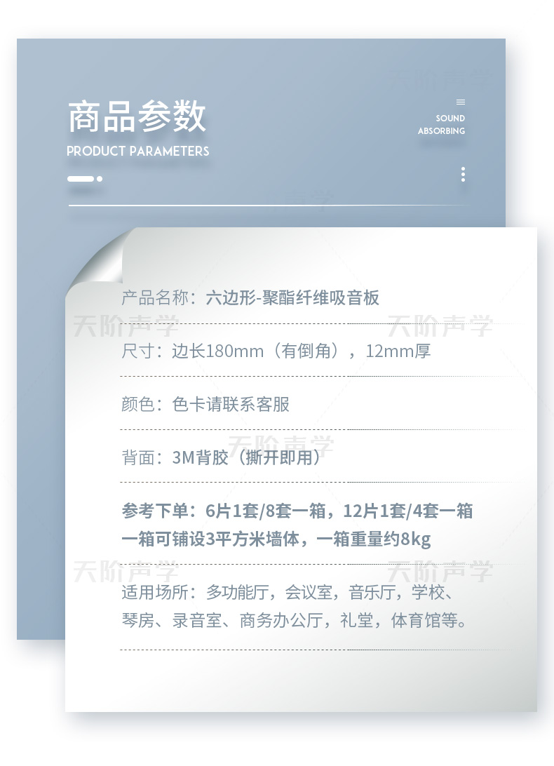適用場所:電影院、教室、琴房、錄音室、幼兒機構、詢問室、禁閉室、會議室、舞蹈室、室內體育場等有較高聲學要求的場所。